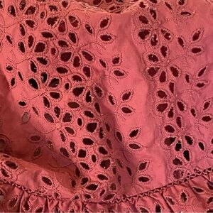 Rebecca Taylor Karina Altered Shoulder Tie Ruffled Eyelet Lace Midi Dress Sz 0