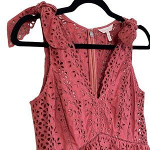 Rebecca Taylor Karina Altered Shoulder Tie Eyelet Lace Midi Dress Sz 0