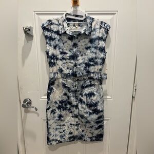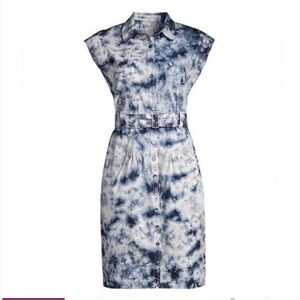 Rebecca Taylor LA VIA Sleeveless Tie-Dye Button Down Belted Dress