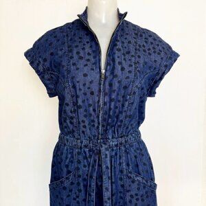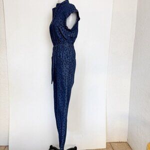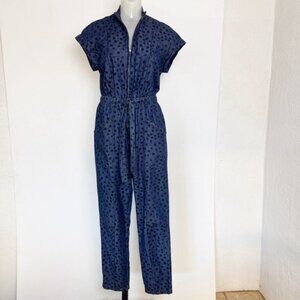 Rebecca Taylor LA VIE Le Faune Blue & Black Print Denim Jumpsuit Size XSmall