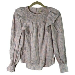 Rebecca Taylor La Vie Darcie Ruffle Top Pink Polka Dot Blouse Size XS