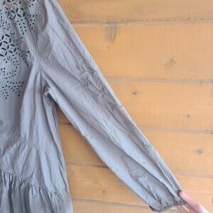 Rebecca Taylor La Vie Poplin Olive Embroidered Dress Large Long Sleeve Boho