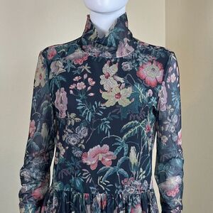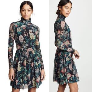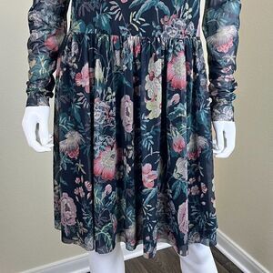 Rebecca Taylor La Vie Women's Size L Faded Garden Mesh Foral Mini Pullover Dress