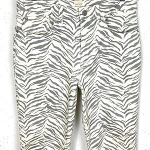 Rebecca Taylor La Vie Zebra Print Jeans Straight Leg High Rise White Gray 28