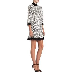 Rebecca Taylor La Voe Jaguar Print Dress in Sand White Black Eyelet Size Small