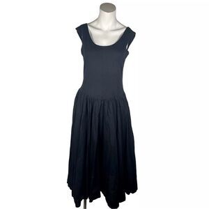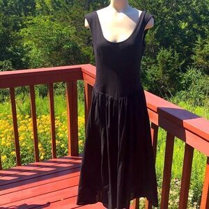 Rebecca Taylor La Vie drop waist cotton ballerina dress cap sleeves scoop neck and back black on black with pockets Medium