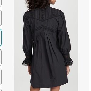 Rebecca Taylor Lace Mock Neck Long Sleeve Poplin cotton mini Dress black 0