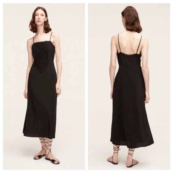 Rebecca Taylor Lace Patch Silk Midi Slipdress Sz 4 NEW