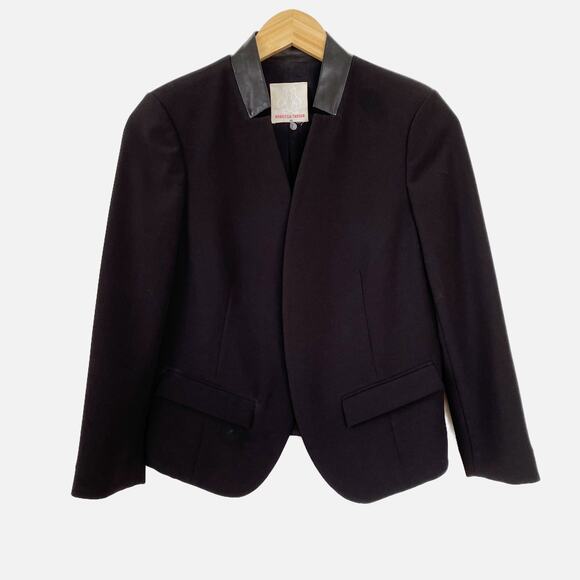 Rebecca Taylor Lamb Leather Trim Blazer Jacket Black Size 4