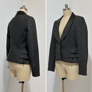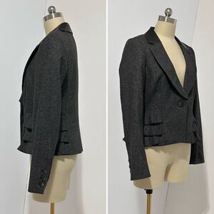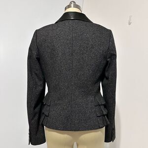 Rebecca Taylor Leather Collar Ruffle Jacket Sz 10 Victorian Gothic Office Siren