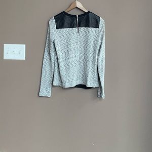 Rebecca Taylor Leather Long Sleeve Shirt Black Grey Size Small