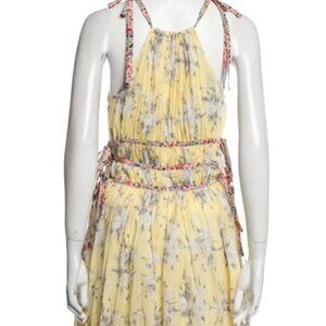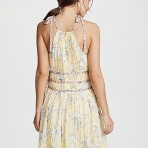 Rebecca Taylor Lemon Rose Goddess Pleat Floral Yellow Ties Midi Dress XS $495