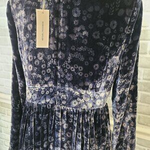 This elegant Rebecca Taylor Liane dress features a V-neck design and blue floral velvet fabric. Perfect for special occasions, this new dress combines luxury and style effortlessly.