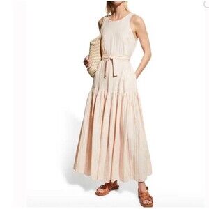 Rebecca Taylor Light Pink Linen Sleeveless Pleated Preppy Maxi Dress M