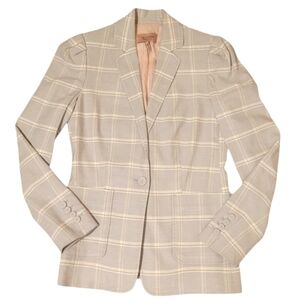Rebecca Taylor Linen Plaid Blazer Jacket Gray White Button Pockets Women's Sz 0