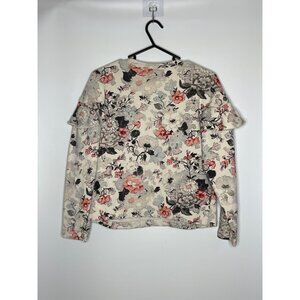 Rebecca Taylor Long Sleeve Lua Ruffle Floral Pullover 100% Cotton Cream Small