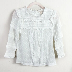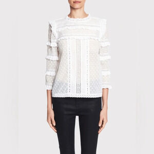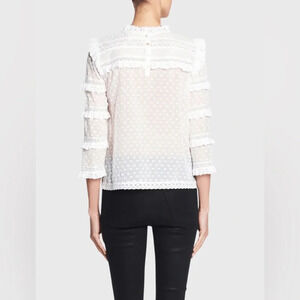 Rebecca Taylor Long Sleeve Moon Dot Embroidered Top in White size 4