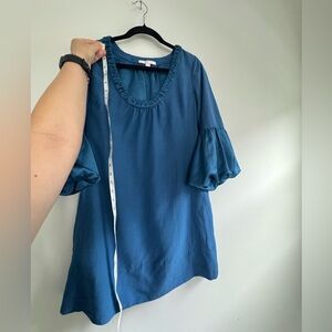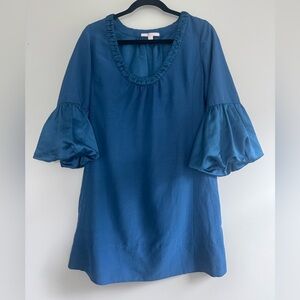 Beautiful Long Sleeve Shirt Dress in Teal Blue by Rebecca Taylor Size Medium 31.5in Long