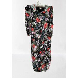 Rebecca Taylor Lua Floral-Print Crewneck Long-Sleeve Jersey Reched Dress Small