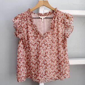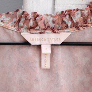 Rebecca Taylor Lucia Floral Silk & Metallic Pink MULBERRY COMBO Top Size 4