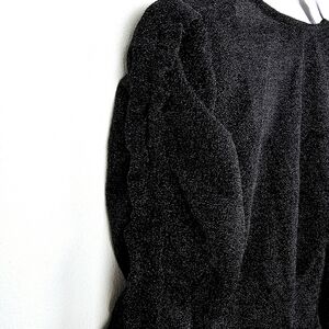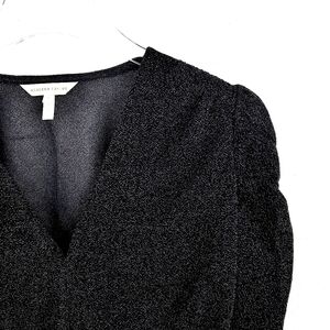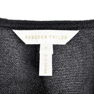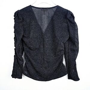 Rebecca Taylor Lurex Jersey Ruched V-neck Top Black Metallic Glitter size Small