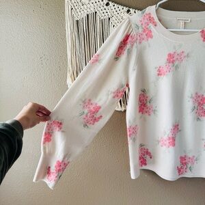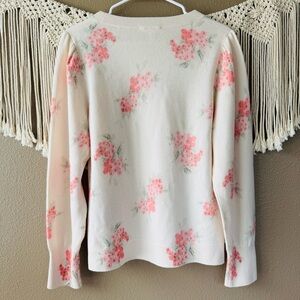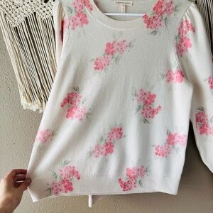 Rebecca Taylor Maia Floral Rose 100% wool cream crew neck Sweater pullover B
