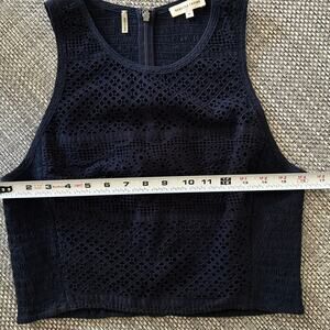 Rebecca Taylor Maise Sheer Smocked Eyelet Navy Blue Cropped Cotton Tank Top 10