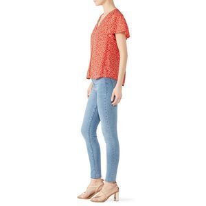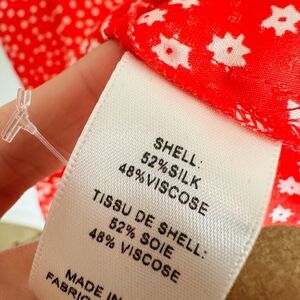NWOT – Originally retailing for $295, this luxe designer blouse from Rebecca Taylor features a soft red and white floral print, ruched bodice, and flutter sleeves for a romantic silhouette.