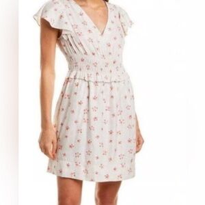 Rebecca Taylor Maui Fleur V-Neck Flutter Sleeve Silk Blend Dress Size Large