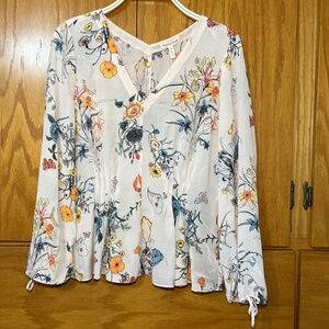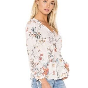 Elevate your wardrobe with this stunning Rebecca Taylor blouse. The beautiful floral pattern and butterfly design give off a cottagecore, flowy vibe that is perfect for any casual or cocktail occasion. The long sleeve, classic fit blouse is made of 100% silk and is lightweight and semi-sheer, making it perfect the perfect all around blouse.
