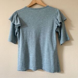 Rebecca Taylor Melange Wool Blend Ruffle Top in Glacier