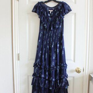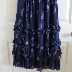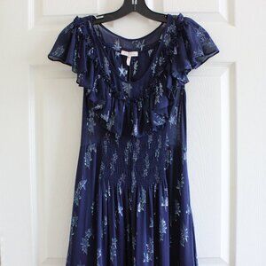 Rebecca Taylor Metallic Star Silk Ruffle Hem Midi Dress