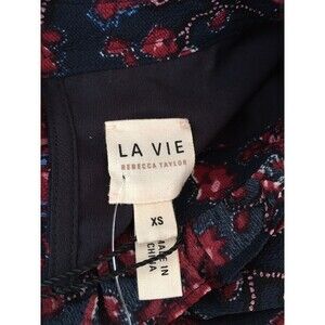 La Vie Rebecca Taylor Mini Madeleine Dress Long Sleeve Boho paisley floral print Mock Neck Ruffle Size XS Navy Blue red drop waist See pictures for more details and measurements