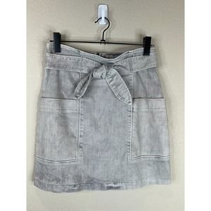 Rebecca Taylor Mini Skirt Size 27 Gray Tie Front High Rise Stretch Denim La Vie