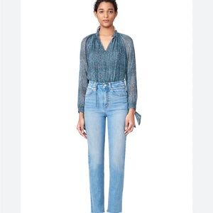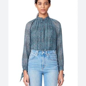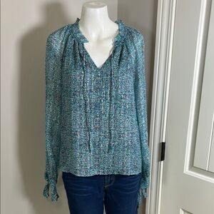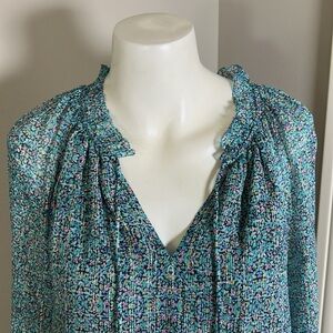 Rebecca Taylor Minnie Blue Floral Silk Tie Blouse floral Turquoise blue Sz 2