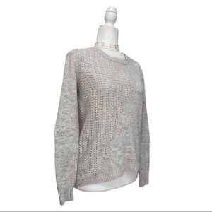 Rebecca Taylor Mixed Gauge Pointelle knit sweater featuring Zipper Shoulder Accent Material is 47% Wool, 38% Viscose, 10% Nylon, + 5% Cashmere.