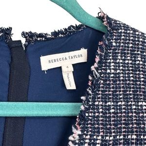 Rebecca Taylor Multi Tweed V-Neck Navy and Pink Fit and Flare Dress