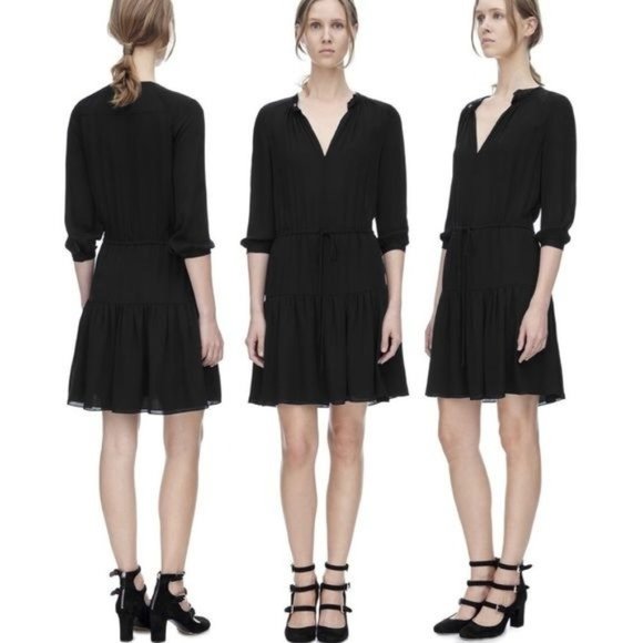 Rebecca Taylor | NWOT Silk Long Sleeve Double Georgette Flutter Hem Shirt Dress