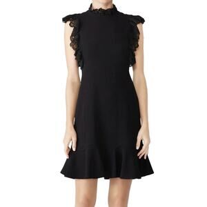 Rebecca Taylor NYC Flutter Sleeves Lace Dress in Black, Size US 0