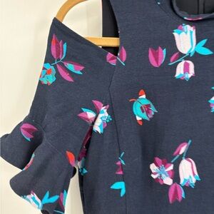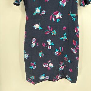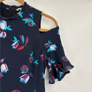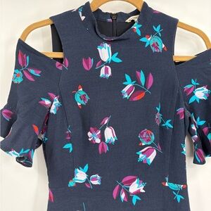 Rebecca Taylor Navy Blue Bellflower Floral Ruffle Cold Shoulder Sheath Dress 4