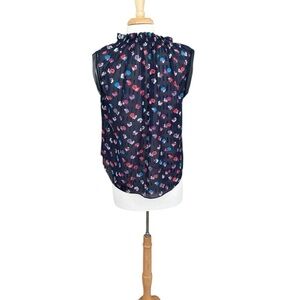 Rebecca Taylor Navy Foral Sakura Clip Silk Top Size Small. Chic sleeveless blouse with vibrant floral design. Perfect for versatile styling.