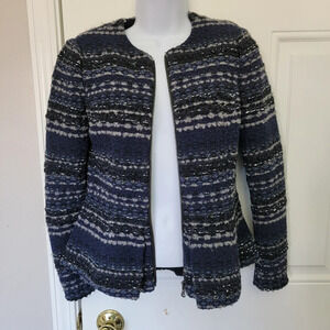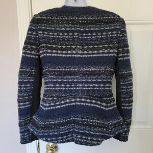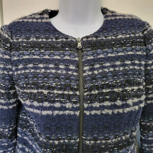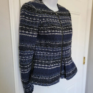 Rebecca Taylor Navy Gray Silver Full Zip Peplum Jacket Cardigan Size 0