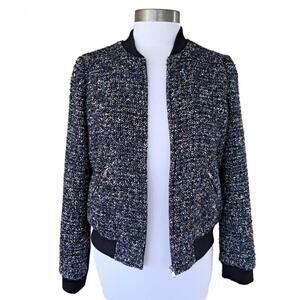 Rebecca Taylor Navy Multi Tweed Bomber Jacket Size 4 MSRP $630