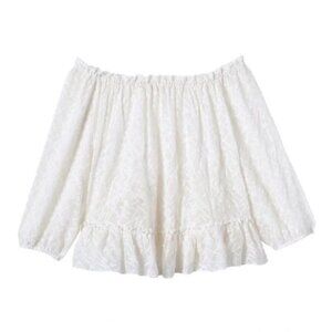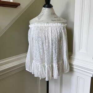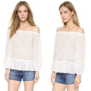 Rebecca Taylor Off the Shoulder Top Shirt Womens 2 Cream Ivory Chevron Gauze