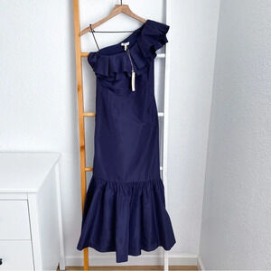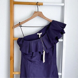Rebecca Taylor One Shoulder Faille Silk Midi Dress Dark Violet Blue Ruffle NEW 2