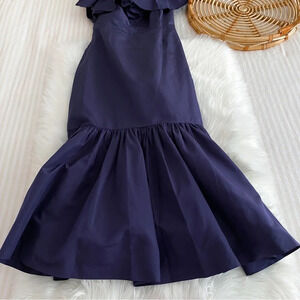 Rebecca Taylor One Shoulder Faille Silk Midi Dress Dark Violet Blue Ruffle