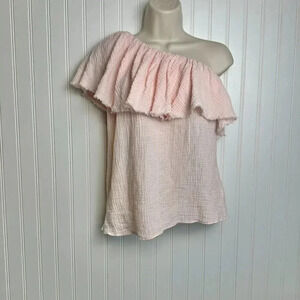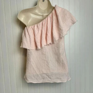 Rebecca Taylor One Shoulder Pink Gauze Ruffle Top size 2 H47