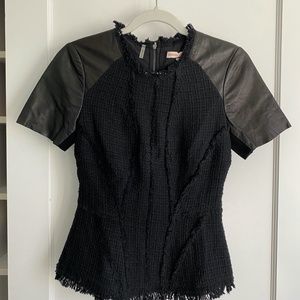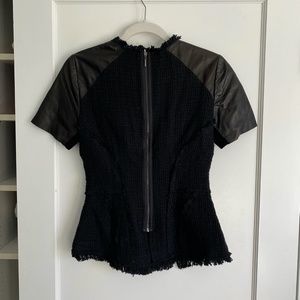 Rebecca Taylor Peplum Tweed Top with genuine leather