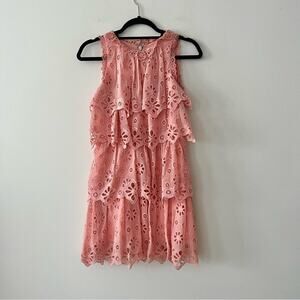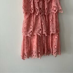 Rebecca Taylor Pinwheel Tiered Eyelet Mini Dress in Peony Pink