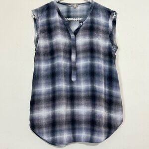 Rebecca Taylor Plaid Gray & White Silk Placket Top SIZE 0